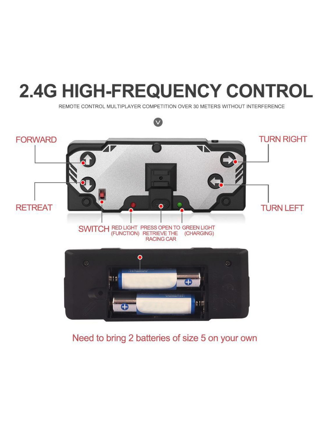 2.4GHz Remote Control – Stable signal with responsive controls